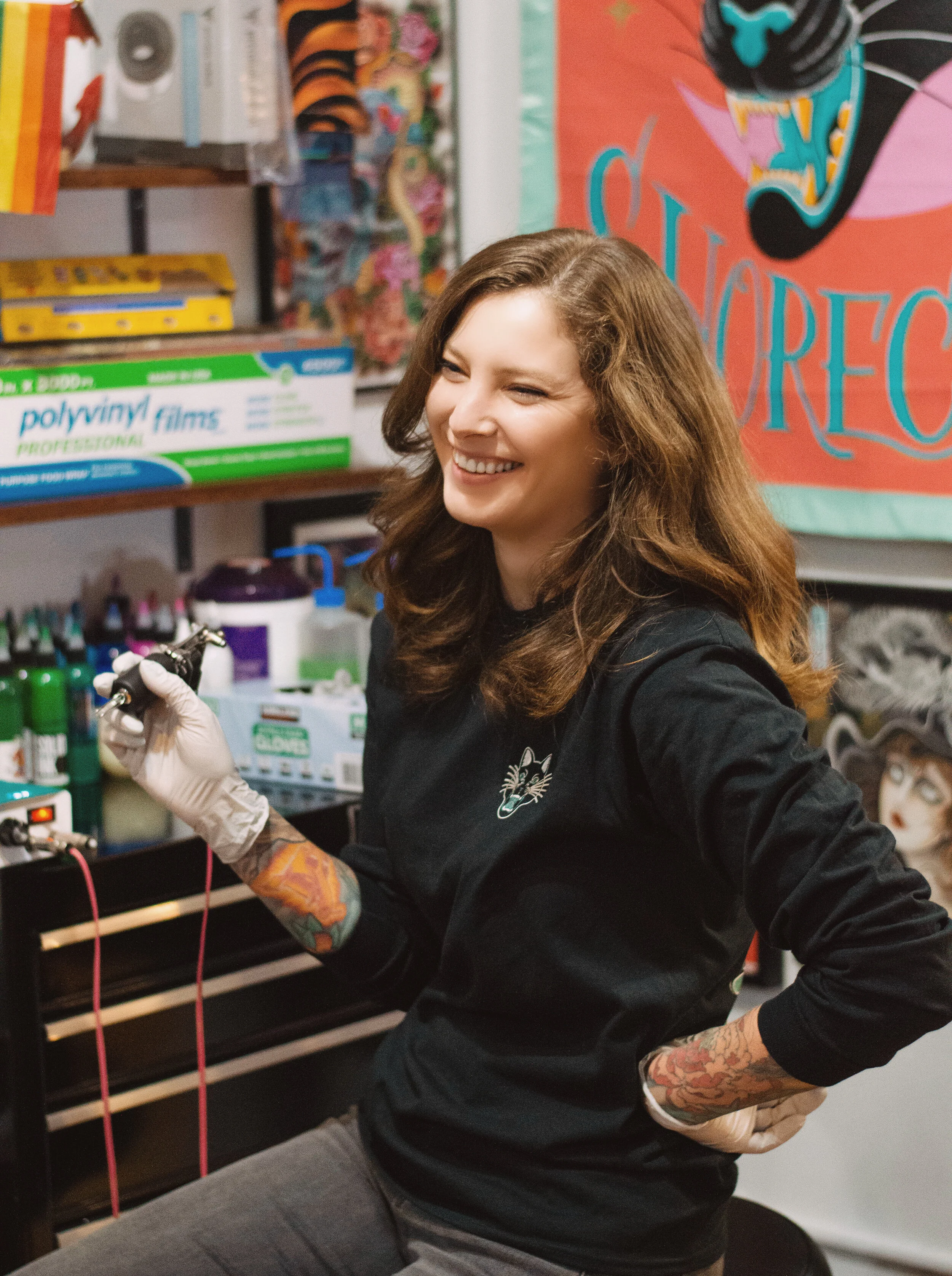 I am a tattoo artist working out of Moonlight Tattoo in Seattle, USA. I like making other kinds of art too, but chances are that if you’re visiting this site you came for the tattoos. And that’s totally alright with me. I love tattoos! If you’re interested in my fine art, feel free to browse the “shop” section of this website for prints, original art, and merch or check out the “paintings” and “design and illustration” pages for examples of my fine art as well as logo and product designs. To get in touch about tattoos, commissions, or other design projects, go to the “contact” page and shoot me an email or fill out a tattoo request form.